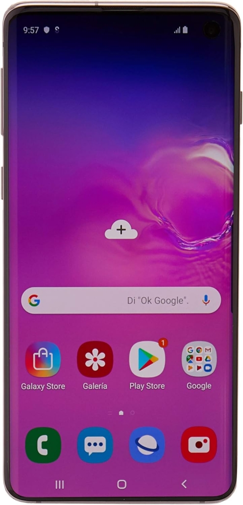 Samsung Galaxy S10 SM-G973F. Bildschirmdiagonale: 15,5 cm (6.1″), Display-Auflösung: 1440 x 3040 Pixel, Display-Typ: OLED. Prozessor-Taktfrequenz: 2,7 GHz. RAM-Kapazität: 8 GB, RAM-Typ: LPDDR4X, Interne Speicherkapazität: 128 GB. Auflösung Rückkamera (numerisch): 12 MP, Rückkamera-Typ: Dreifach-Kamera. SIM-Kartensteckplätze: Dual-SIM. Installiertes Betriebssystem: Android 9.0. Akku-/Batteriekapazität: 3400 mAh. Produktfarbe: Schwarz. Gewicht: 157 g